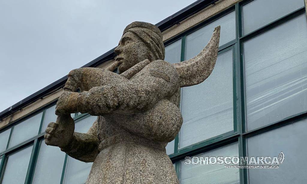 La escultura de piedra de la mujer gaiteira cuyo primer emplazamiento fue la entrada a la zona recreativa de O Aguillón, fue inaugurada el 10 de agosto de 1994. Se trasladó a la actual ubicación el 16 de mayo de 2018 debido a que la zona donde se encontraba — semiescondida entre los mirtos del Paseo do Aguillón— era idóneo para que los vándalos ejercieran sus fechorías y pasara desapercibida para los que por allí caminaban.