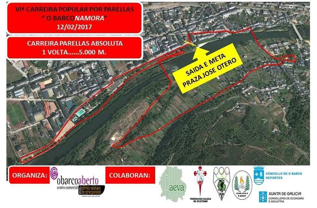 A carreira farase por parellas, que irán atadas polos pulsos cun lazo que se entregará xunto cos dorsais. O circuito consta dunha volta de 5.000 metros, aproximadamente que percorrerán o casco urbano de O Barco con saída e meta na Praza José Otero. Faranse controis de paso en varios puntos da proba polos que terán que pasar os participantes que non queiran ser desclasificados.