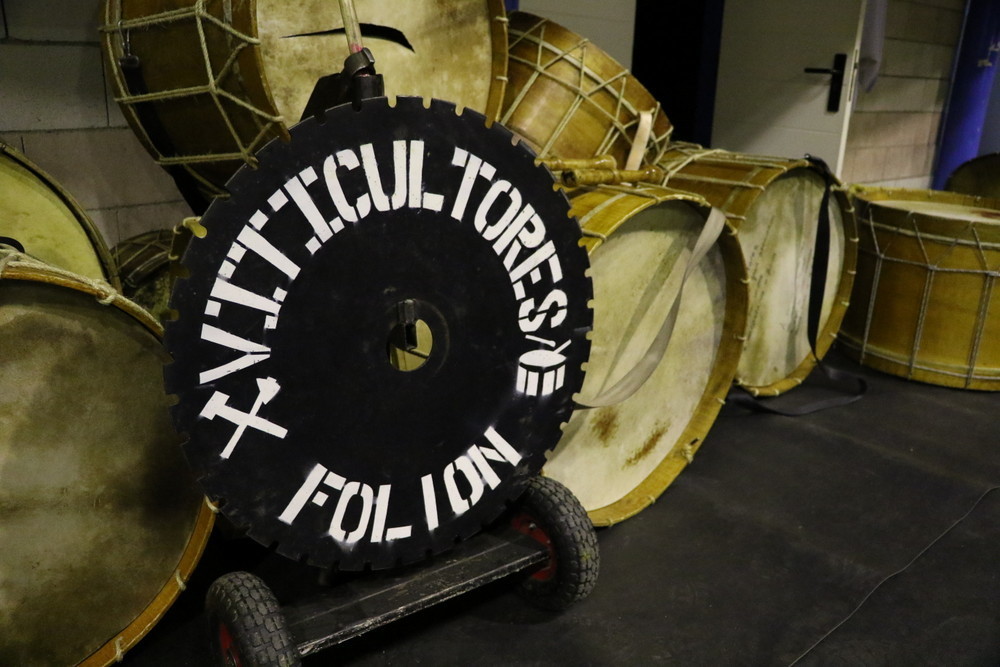 Os Viticultores está formado por nenos e adultos. O seu ritmo está marcado polas gadañas, as aixadas, os sachos e agora tamén por dous tambores. Ademais, o folión ten unhas máscaras chamadas "Garnachos". «O primeiro ano non tiveron nome. Bautizámolos así porque van co folión e todos teñen motivos vitícolas ». Outra das súas peculiaridades é a pancarta que os presenta xa que o grupo usa un disco de corte de lousa.