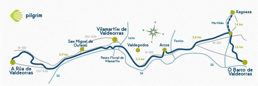 En concreto, el Camino de Invierno discurre por Rubiá, Carballeda de Valdeorras, O Barco de Valdeorras, Vilamartín de Valdeorras, A Rúa, en la provincia de Ourense; Quiroga, A Pobra do Brollón, Monforte de Lemos, Pantón, O Saviñao y Chantada, en Lugo; Rodeiro, Lalín, Silleda y A Estrada, en Pontevedra, y Vedra, Boqueixón y Santiago de Compostela.