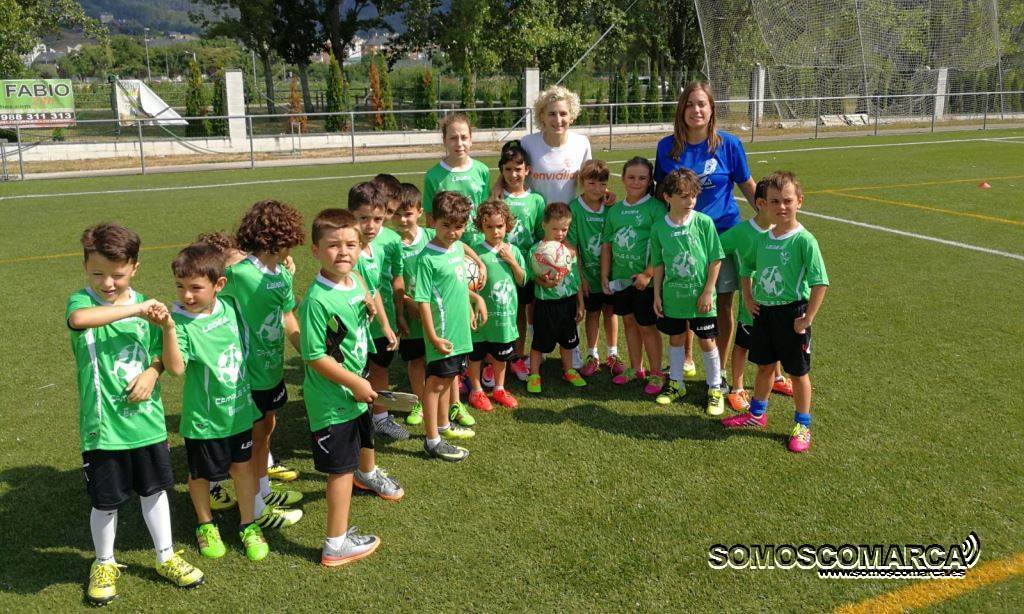 Andrea Carid, jugadora del Ourense Envialia, visitó a los alumnos del I Campus de fútbol del CD Rúa en esta quinta jornada de actividades organizadas por el equipo local en colaboración con el concello.