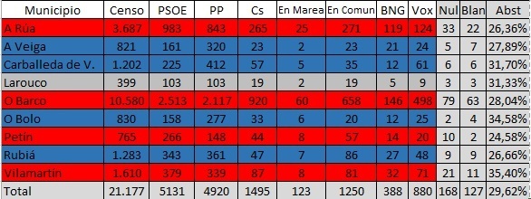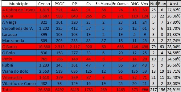 Empate técnico nos Concellos de Valdeorras nas Eleccións Xerais