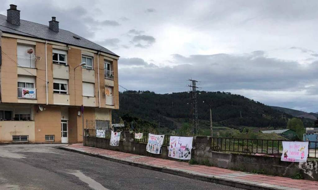 Imposible no fijarse en las pancartas de colores que adornan cierres y casas cuando uno se dirige desde la cooperativa de O Barco hasta el cementerio por la calle donde estaba el matadero. Dibujos de ambulancias, de profesionales de la sanidad, de la Policía Local, de la Guardia Civil, arco iris hechos con pompones y una infinidad de motivos de vivos colores alegran la retina.