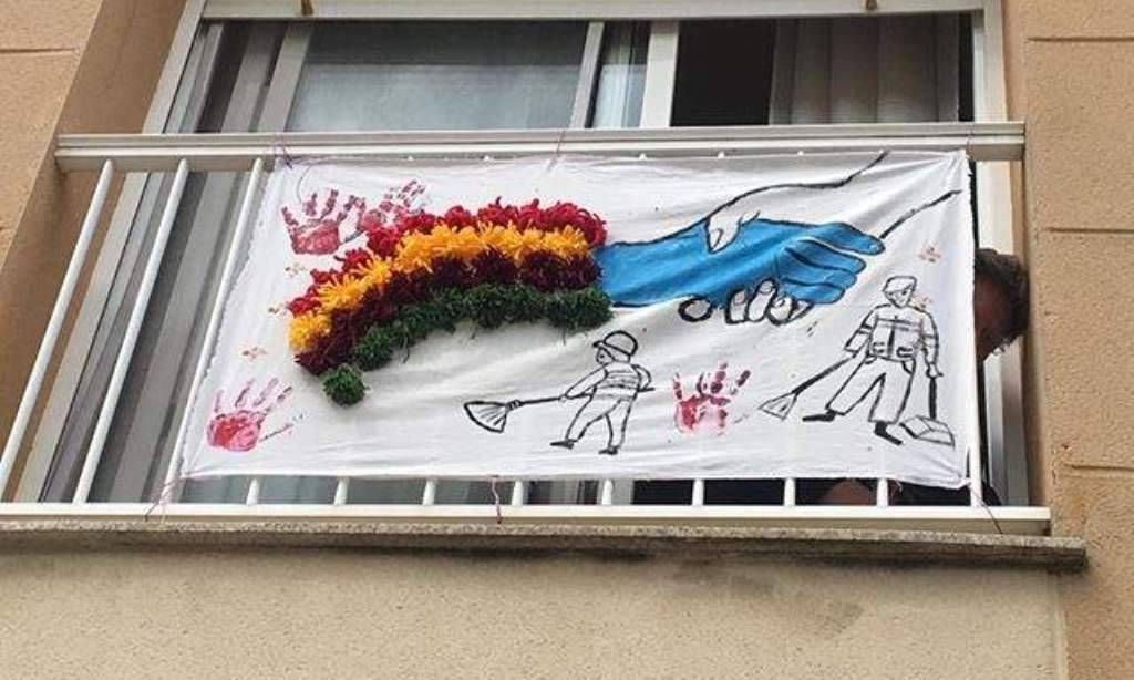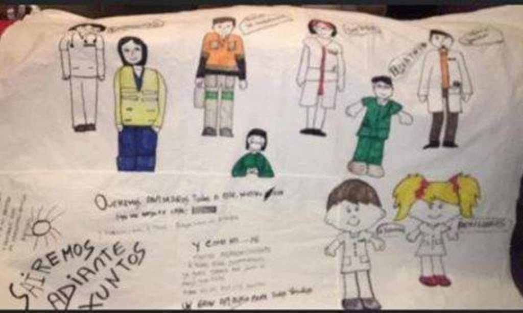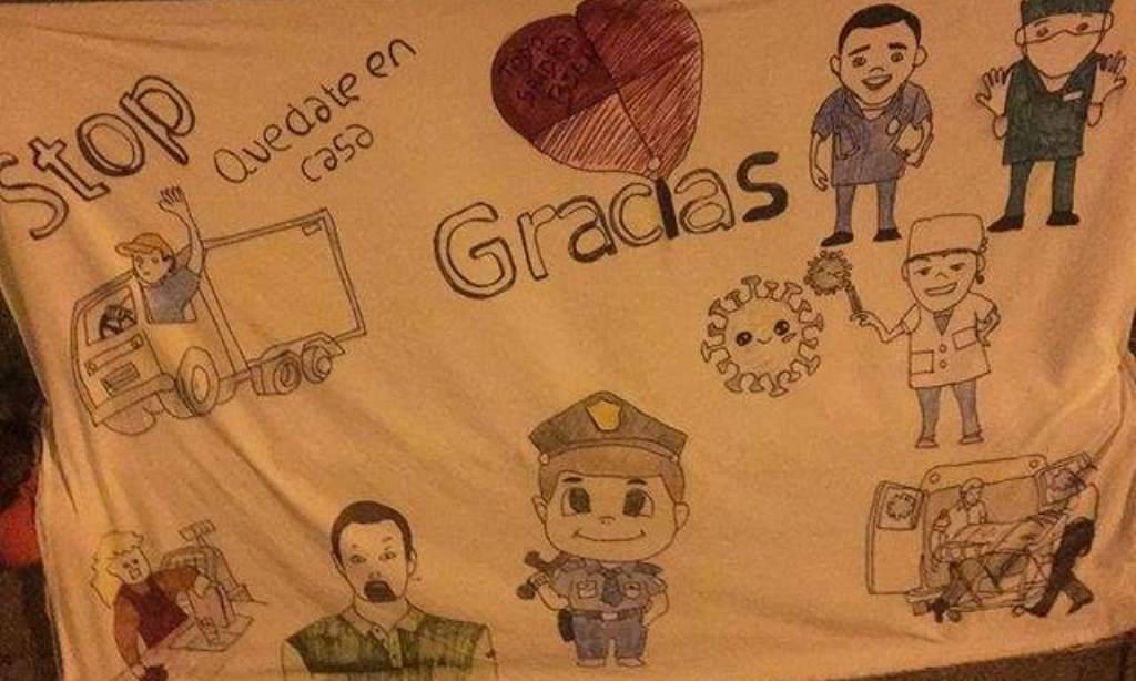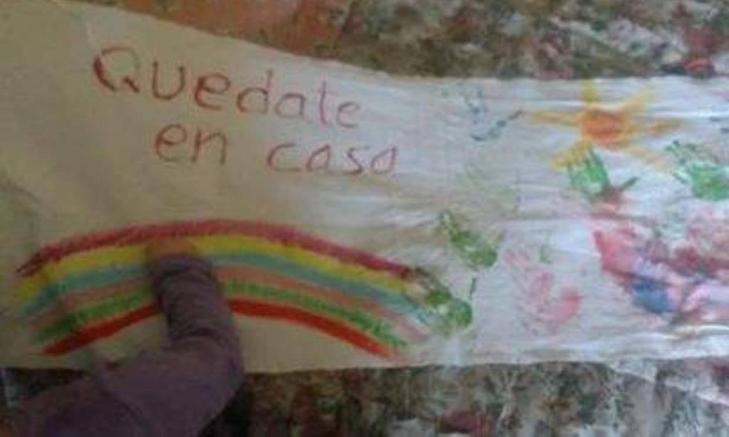 Todo empezó cuando Julieta, la vecina de Marisol quiso pintar los famosos arco iris al principio de la cuarentena. El primero que hicieron fue en papel pero «se le marchaba la pintura cuando llovía». Luego lo intentaron con goma eva que si resistía el paso del tiempo y el agua pero Marisol la donó para hacer máscaras de protección, así que al final las pancartas fueron realizadas en tela.