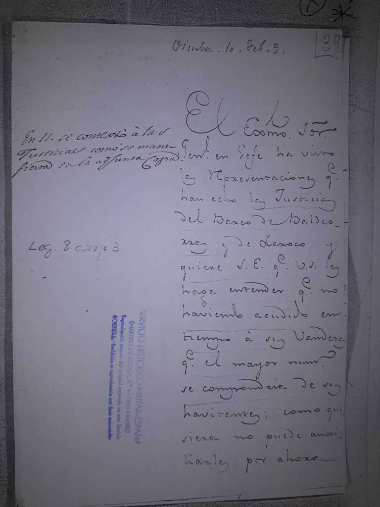 Según recoge esta misiva, escrita en Oimbra (donde se encontraba el Cuartel General) el 9 de febrero del citado año, ni O Barco ni Larouco habían presentado a los reclutas demandados por el ejército de la Izquierda. Por esta razón, les niegan la ayuda y les dicen que armen a sus hombres de entre 16 y 40 años.