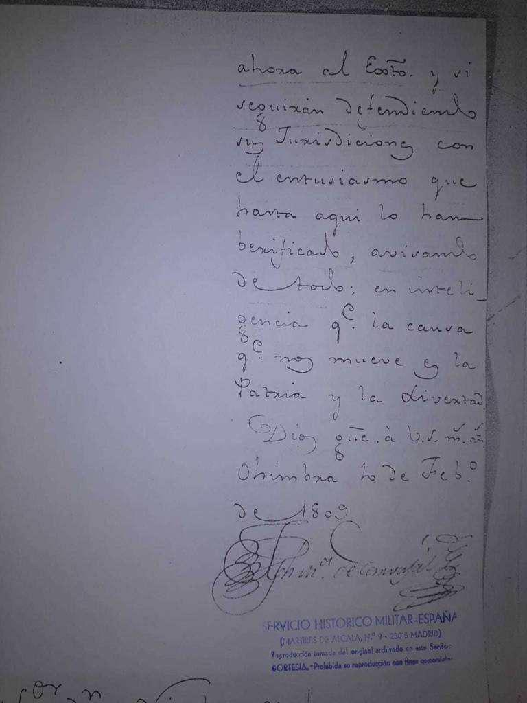 A continuación la transcripción del texto firmado por el jefe del Estado Mayor del Marques de la Romana, José María de Carbajal y que manda al Comandante de la Primera División del Ejercito de la Izquierda, General Nicolas May :