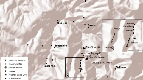 Lo cierto es que este yacimiento, ya declarado Bien de Interés Cultural, BIC, está muy cercano a la primera aproximación del grupo a Valdeorras, la Ciudad de la Selva. Hasta 19 campamentos de guerrilleros antifranquistas ha encontrado Sputnik Labrego en los montes de Casaio, todos datados durante la Guerra Civil o el periodo de posguerra.