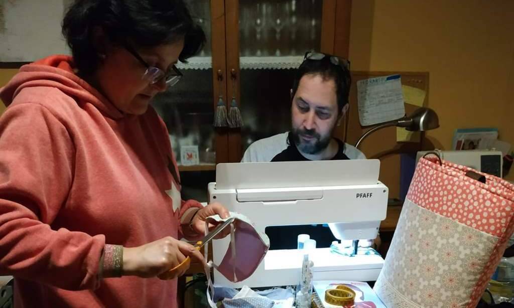 Nos primeiros días da pandemia cando se pecharon os locais, Encarna e a súa parella Rober dedicáronse a facer mascarillas. «As primeiras que fixemos levámolas o supermercado Covirán da Rúa e Joaquín repartías á xente do seu negocio ou, cando ía co reparto polas casas e vía que alguén as necesitaba, tamén llas daba», conta Encarna. Logo ante a dúbida de se estas mascarillas de tea eran ou non efectivas pensaron se seguir a facelas ou non. Foi entón cando a Natalia Alonso —da mercería Entredós da Rúa— doáronlle o tecido TNT e formaron un grupo moi numeroso de xente implicada.