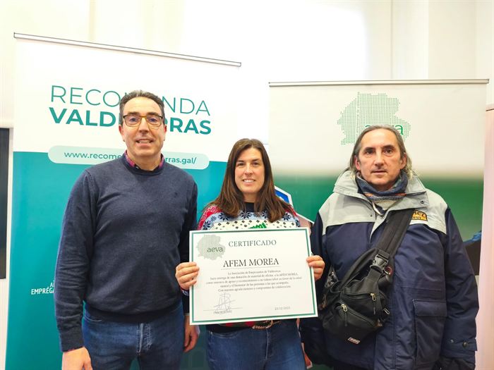La Asociación Empresarial de Valdeorras (AEVA) ha realizado una donación solidaria a la Asociación Morea con motivo de la Navidad, dentro da iniciativa AEVA Solidaria, una acción impulsada en años anteriores que se recupera este año con el objetivo de consolidarse en el tiempo y reforzar el compromiso social de la entidad con el tejido asociativo de la comarca.