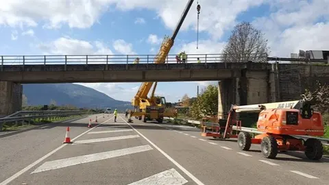 El puente, ubicado en el kilómetro 456 de la N-120, sufrió daños estructurales en mayo de 2024 tras el impacto de un camión articulado, lo que llevó a su demolición y posterior reconstrucción. La nueva estructura, cuya viga principal fue instalada el 18 de diciembre de 2024, ha sido ejecutada por el Ministerio de Transportes y Movilidad Sostenible con una inversión de 600.000 euros.