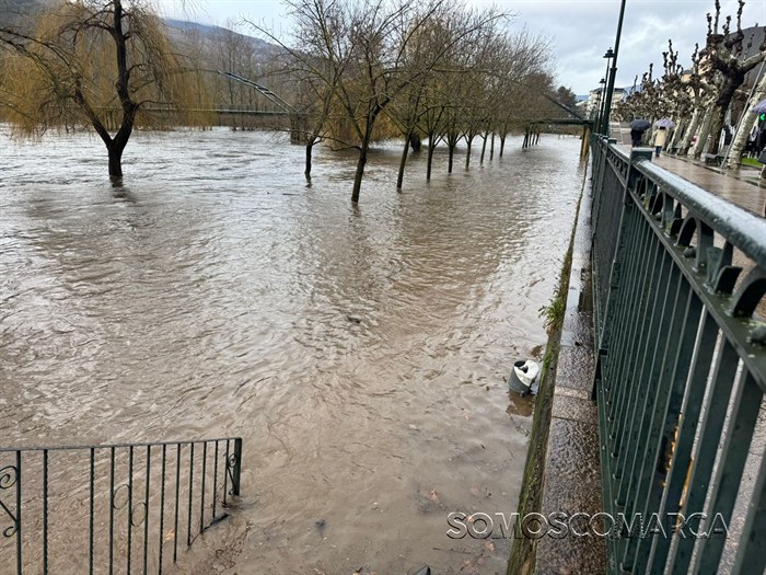 Las intensas lluvias registradas en los últimos días en la comarca, junto con la nieve acumulada en las zonas altas, han provocado un notable aumento del caudal del río Sil a su paso por O Barco de Valdeorras. La situación llevó este martes a la Policía Local a cortar los accesos al río en todo el paseo del Malecón, después de que el agua alcanzara ya los primeros peldaños de las escaleras.