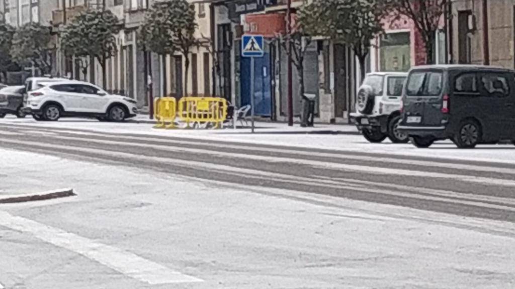 La cencellada es un fenómeno meteorológico que hace que la niebla se precipite en forma de cristales, similares a los de la nieve, y que ha teñido las calles de O Barco de blanco, en esta mañana de 9 de enero.
