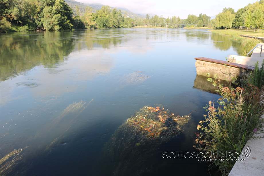 La estampa vuelve a repetirse. Es ya una imagen habitual del río Sil cuando llega el mes de julio. Las algas vuelven a invadir el cauce, dibujando una bella escena que emana de la propia naturaleza pero que dificulta el baño a las personas que optan por la playa fluvial de O Barco para disfrutar del sol y el agua.