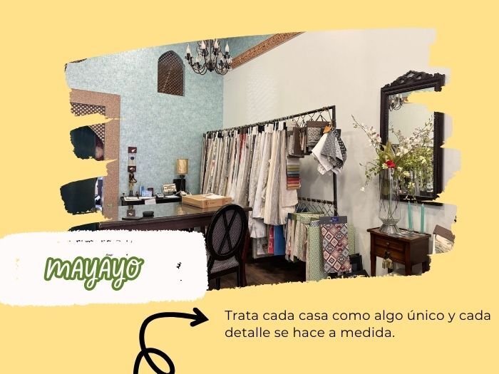 🛍️ Qué ofrece: Mayayo es una tienda especializada en decoración con telas. Alfombras, cortinas, papel pintado, edredones, cojines y todo tipo de elementos textiles para el hogar. Además, cuenta con taller propio, donde se confeccionan cortinas, tapizados, edredones y trabajos a medida, sin externalizar procesos.