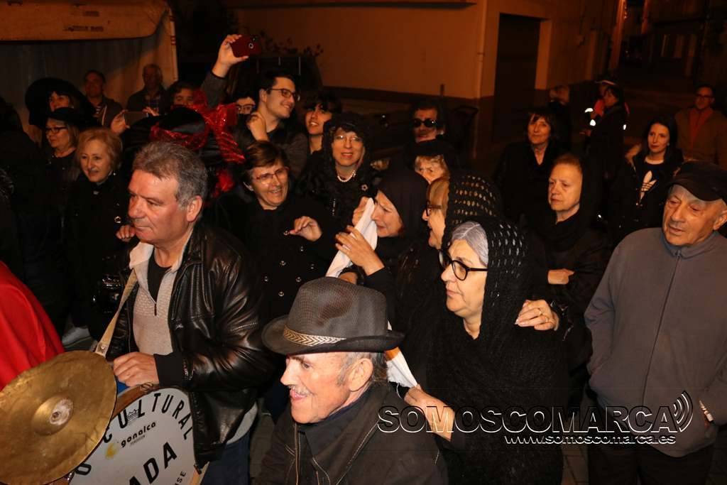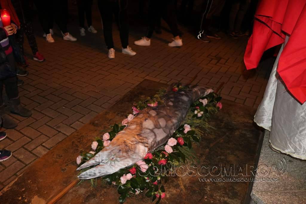 Mientras tanto, en A Rúa, es el grupo Ruada quien se encarga de toda la organización. El día de antes, las esquelas de este peculiar entierro inundan las calles anunciando que a las 20.00 horas es momento de despedirse de la sardina. Es ese momento en el que se abren las puertas del velatorio para dar comienzo a la procesión. «Terminamos en la plaza quemando la sardina, la comadre y el compadre», explica Moncho Días.