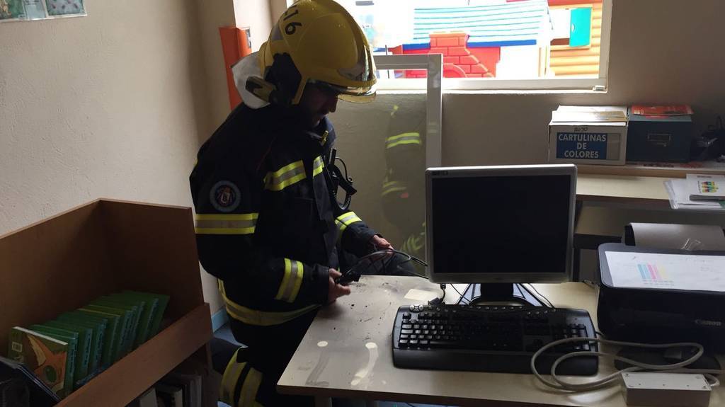 Allí las trabajadores del centro informaron de que había ardido un ordenador de la biblioteca del centro que habían sido inmediatamente desenchufado por lo que el fuego no se extendió aunque si se generó mucho humo. Por esta razón, trasladaron a los alumnos a otra habitación, pero finalmente decidieron llamar a las familias para que se lleven a los niños por precaución, aunque este medio ha podido constatar que no había humo.