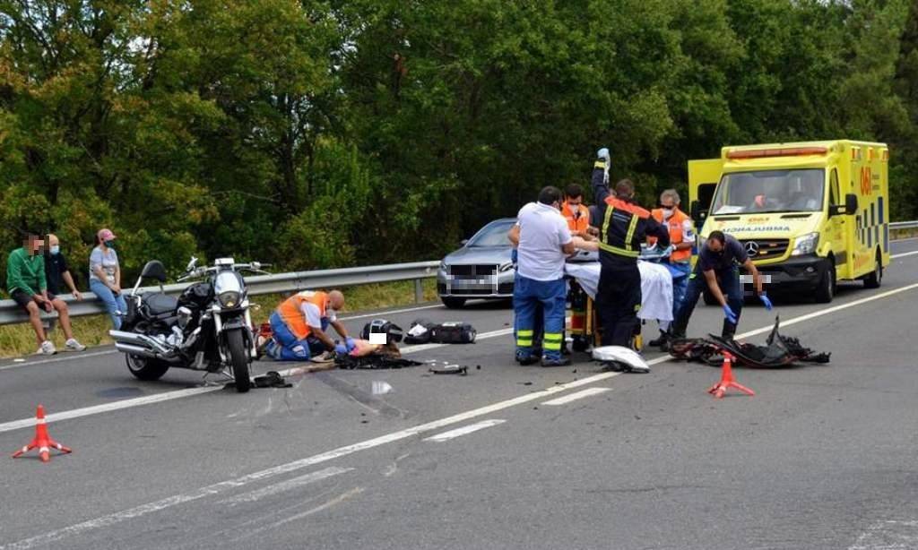 El suceso ocurrió a las 12:00 horas del domingo, 16 de agosto de 2020, en el Km. 4,200 de la carretera OU-540 (Ourense-Portugal), en el término municipal de Barbadás (Ourense). Se vieron involucradas una motocicleta Suzuki VZR 1800 y un Renault Clio. La motocicleta que circulaba hacia Ourense, la conducía un hombre de 45 años —herido grave—, venido de Barbadas, al que acompañaba su hija menor de edad, que ha resultado herida leve.