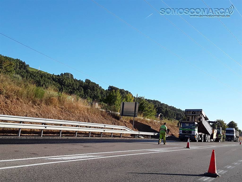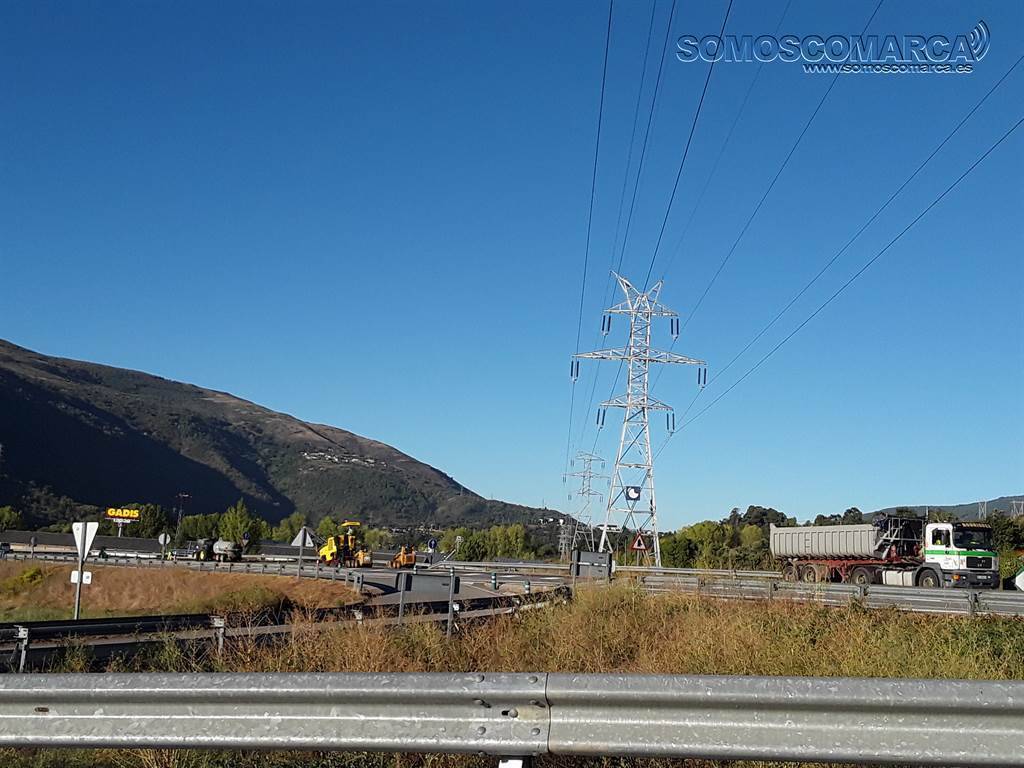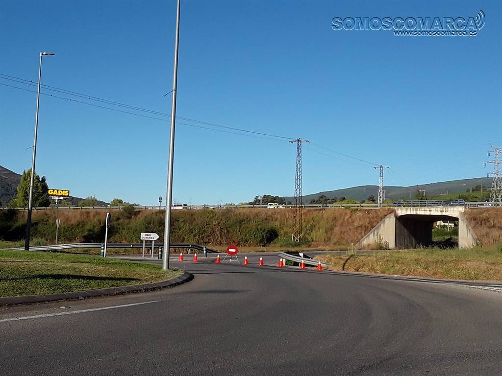 A las 9:oo se colocaban los semáforos reguladores de tráfico entre el pk. 456 y 457 —a la altura del puente situado encima de la N-536, próximo a la rotonda que lleva al polígono de A Raña—, para proceder al arreglo del firme de la N-120 a su paso por O Barco.
