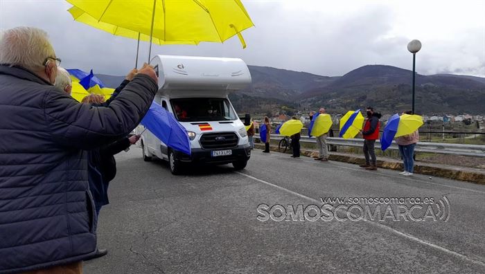 P: Otra de las situaciones que os emocionó fue el recibimiento de los vecinos entre Quiroga en San Clodio, con paraguas con los colores de la bandera de Ucrania.