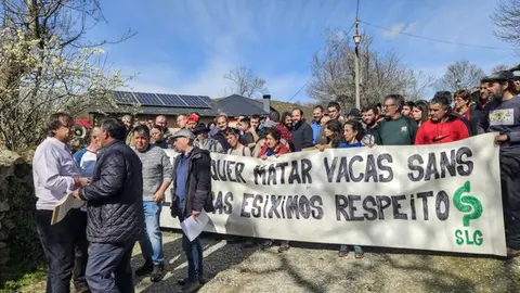 El Sindicato Labrego Galego convocó una manifestación frente a la Delegación Territorial de la Xunta de Galicia en Ourense que congregó a decenas de ganaderos. Entre ellos, Secundino y Luís Domínguez, dueños de la granja de Palleirós (Manzaneda) donde se registraron tres positivos de tuberculosis bovina y se decretó el vaciado sanitario de la explotación, sacrificando a todas sus vacas.