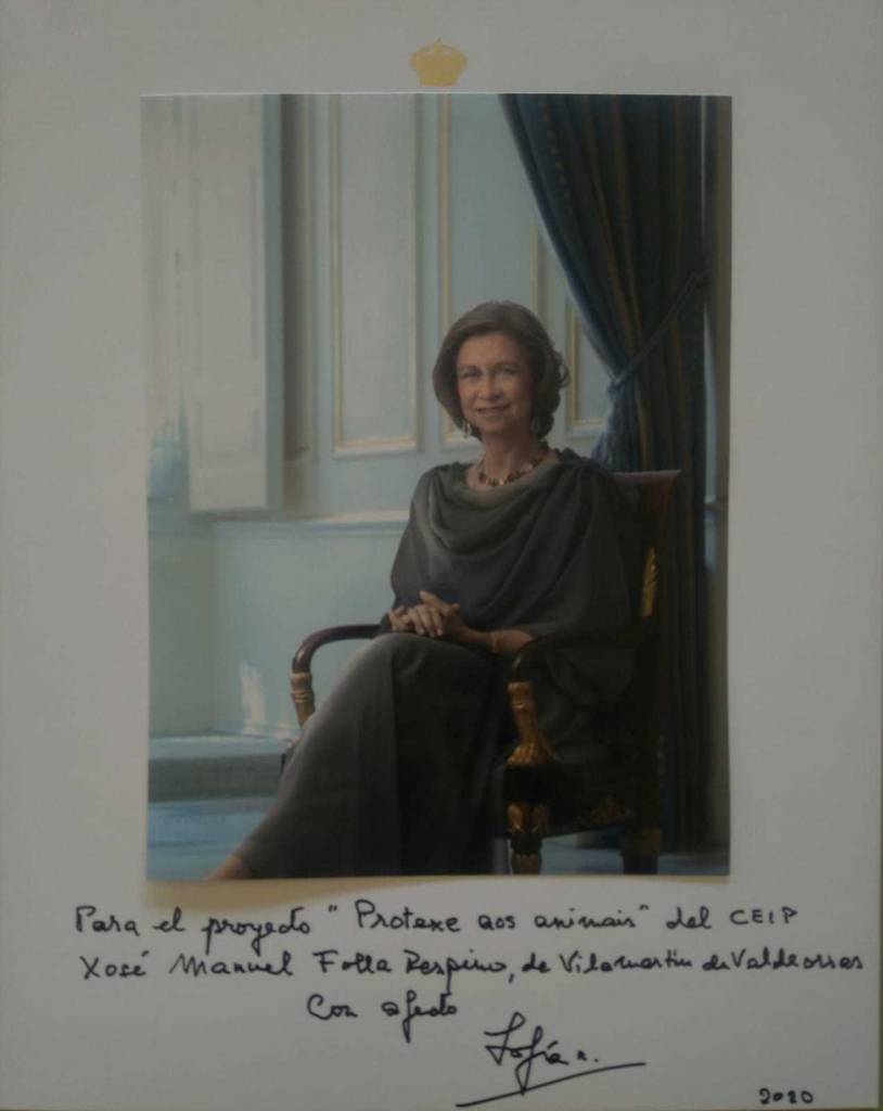 Los alumnos del Colegio Xosé Manuel Folla Respino han recibido una foto dedicada de la Reina Emérita Doña Sofía