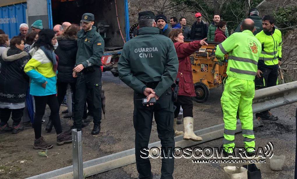 Precisamente, en el momento de abandonar el lugar, vecinos del pueblo cortaron el paso a los trabajadores de la empresa enviada por el organismo provincial, obligándoles a transitar por el desvío, lo cual fue imposible debido a la anchura del vehículo. Finalmente, y escoltados por agentes de la Guardia Civil, pudieron abandonar el lugar. Entre los vecinos se encontraban representantes políticos como el alcalde de Vilamartín, Enrique Álvarez Barreiro, su compañera en el concello Eva Arias, el alcalde de Petín Miguel Bautista y la teniente alcalde de A Rúa, María González Albert.
