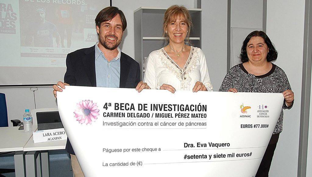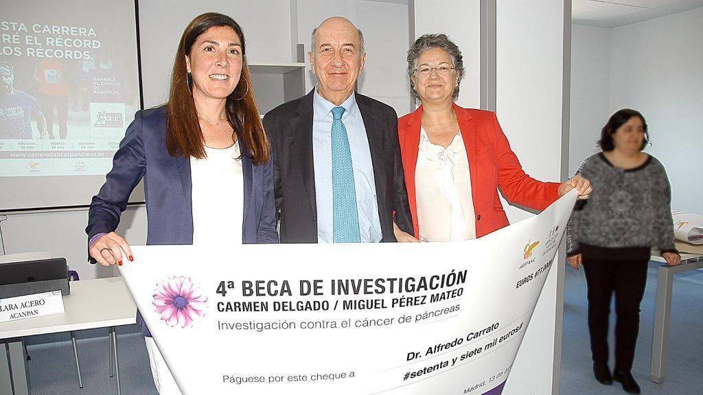 La Asociación Cáncer de Páncreas (Acanpan) y la Asociación Española de Pancreatología (Aespanc) entregaron a los doctores Alfredo Carrato y Eva Vaquero las «IV Becas de Investigación Carmen Delgado/Miguel Pérez-Mateo». Cada una cuenta con una dotación que asciende a 77.000 euros, en total 154.000 euros. Han sido posibles gracias a los fondos solidarios que se consiguieron en la Carrera de las Ciudades, en la que también participó Vilamartín.