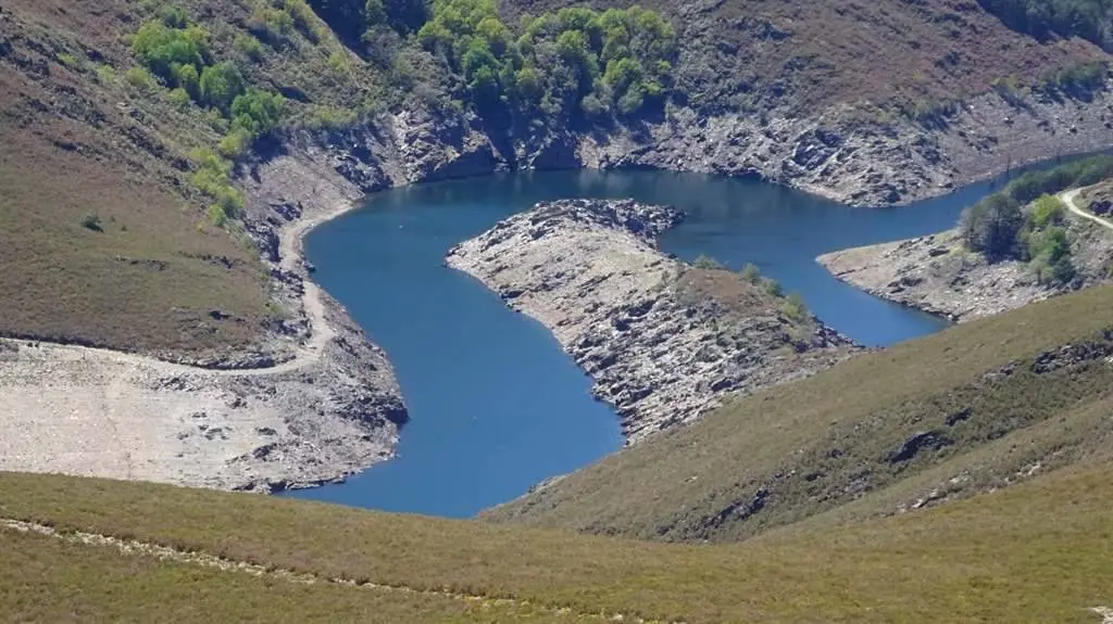 Si eliges llegar desde la vecina localidad de Viana do Bolo lo que te sorprende es otro embalse, el de O Bao y también la maravillosa panorámica a vista de pájaro o las dos torres de equilibrio del Cenza y de As Portas.