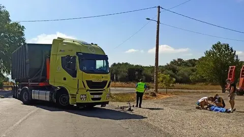 Choque entre un camión y una motocicleta en San Cibrao das Viñas