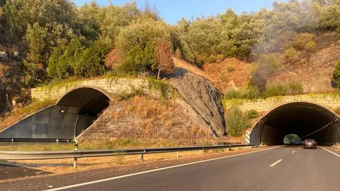 El incendio de Trasmiras (Verín) afecta un carril de la A-52