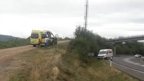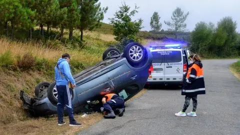 Salida de vía con vuelco en Sarreaus (Ourense)