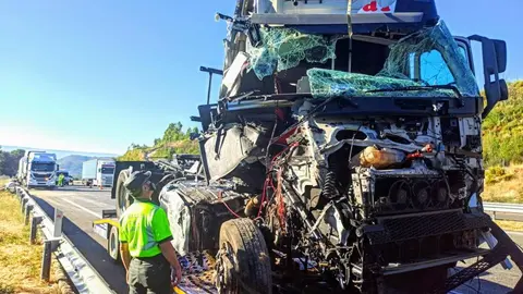 Choque de dos tráileres en la A-52 en Cualedro (Ourense)