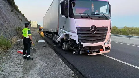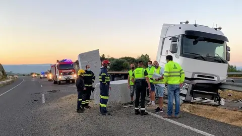 Un tráiler choca contra la barrera y pierde la carga en la A-75