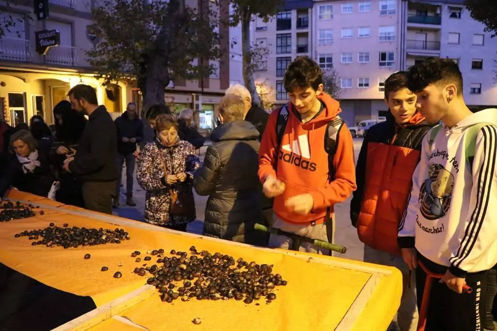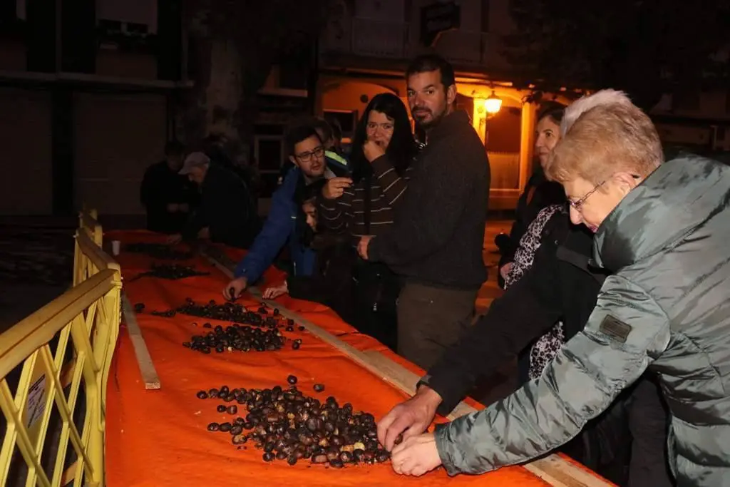 Máis de 700 quilos de castañas e 60 litros de viño repartíronse entre os que decidiron na tardiña do luns 11 de novembro acudir á cita. Pese a ser día laborable foron moitas as persoas que se achegaron a Viloira, sobre todo a partir das oito da tarde cando pecharon os comercios.