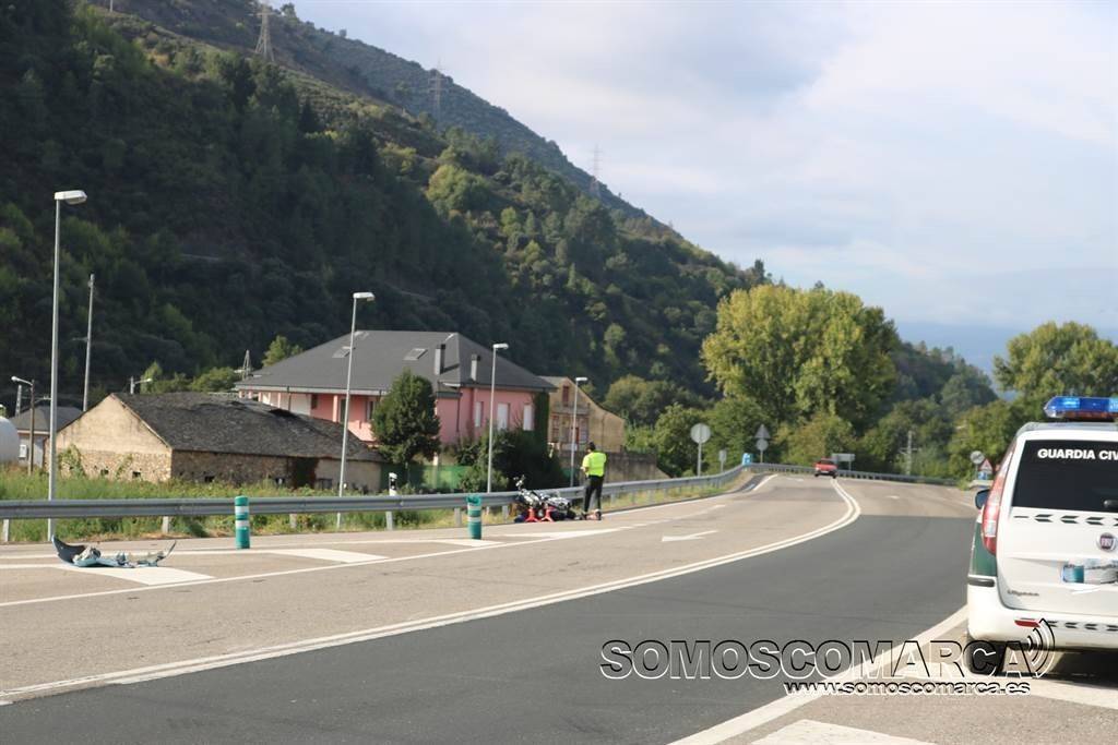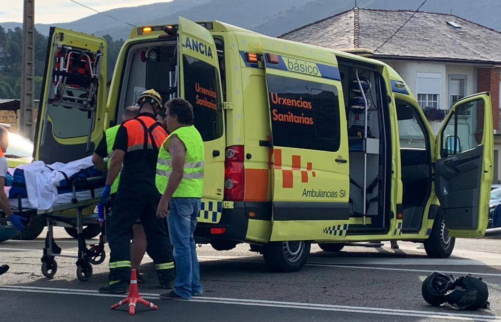 La colisión entre una moto y un turismo en el pk.462, a la altura del cruce de Vilamartín de Valdeorras con la N-120, causa dos heridos graves.