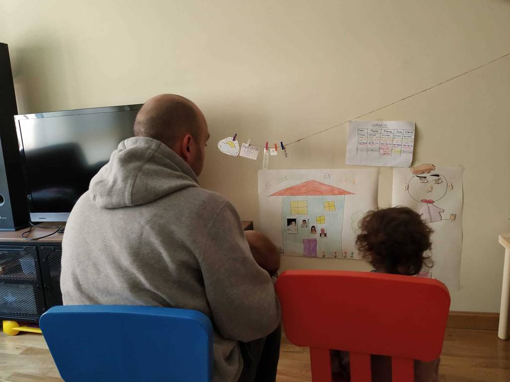 Laura y Ángel Luis han recibido actividades de la escuela infantil para continuar manteniendo una rutina similar. «Hacemos la asamblea igual que ellos. En ese momento se canta la canción de buenos días, vemos quien está en clase, qué día hace, qué mes es…para situarse en el día y después realizan la actividad que toque en el día: una jornada es de gimnasia, otra de colores, también hay actividades de psicomotricidad fina mientras que por la tarde es más de plastilina o más manipulativa», destaca.