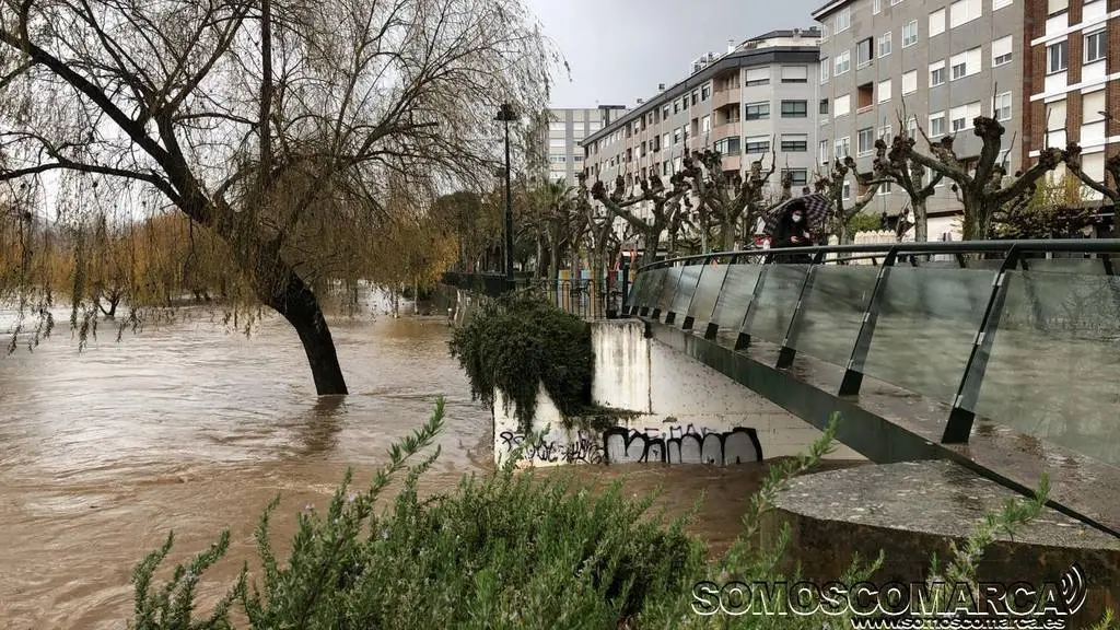 En estos momentos, según el último dato ofrecido a las 14.00 horas, el río se encuentra en los 8.48 metros y lleva 703.98 metros cúbicos de agua. En menos de 6 horas el caudal ha subido más de un metro y continúa en ascenso.