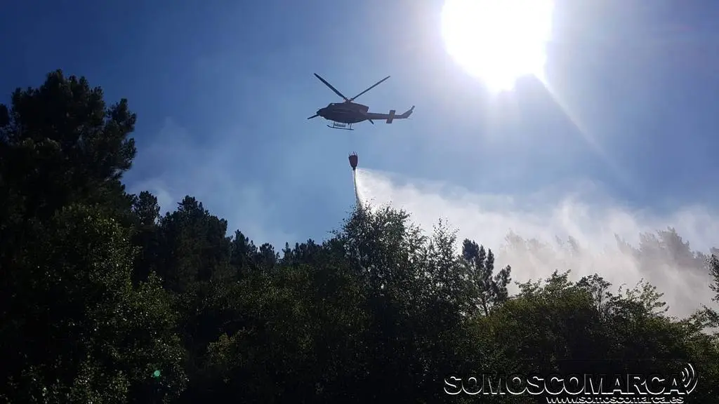 En la extinción del fuego están trabajando dos agentes medio ambientales, 10 brigadas, tres motobombas, una pala, cuatro helicóptero y tres aviones.