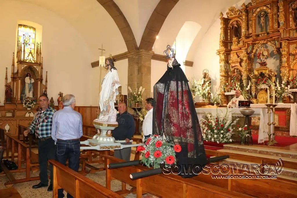 Diez minutos más tarde las mujeres portan la virgen ataviada con un manto negro desde la iglesia al punto de encuentro, en la dirección contraria a la tomada por los hombres que portan el Cristo. Cuando se encuentran las dos imágenes se le quita el manto negro a la virgen y las mujeres que llevan a hombros la talla hacen la genuflexión ante la imagen del cristo dos veces, al cabo de las cuales ambas imágenes toman de nuevo el camino de la iglesia.