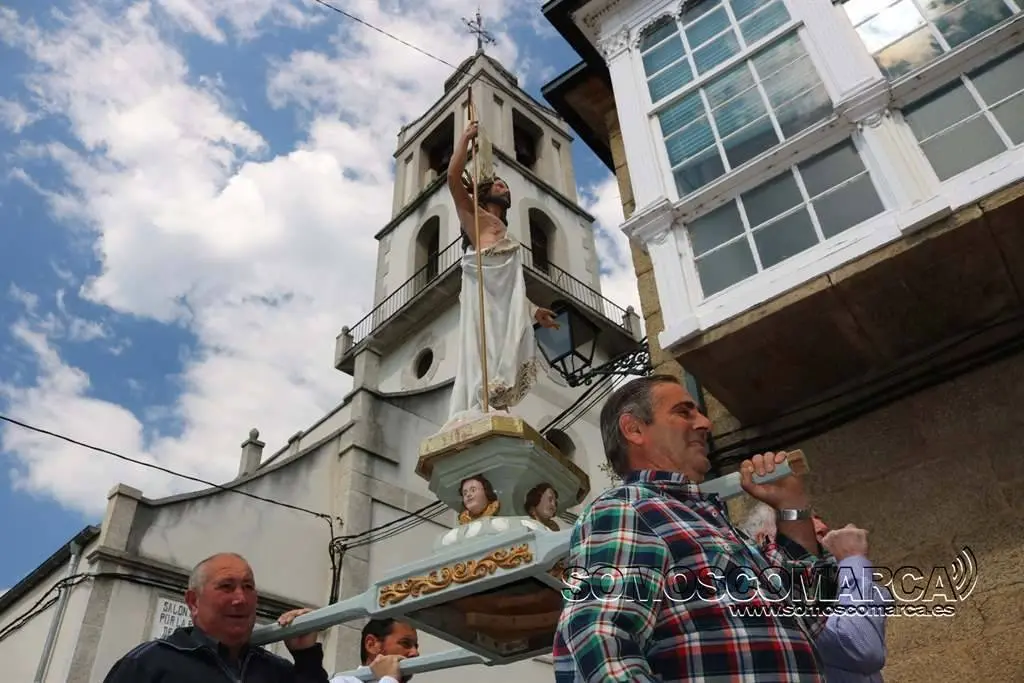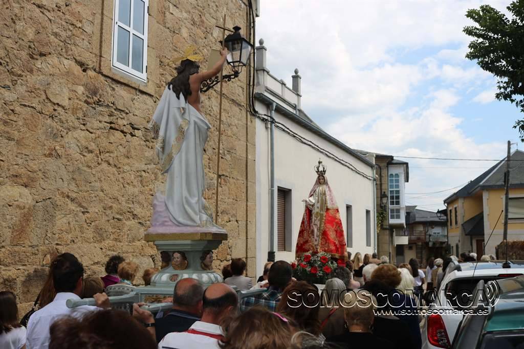 A la una menos cuarto salió desde la iglesia parroquial el Cristo crucificado, acompañado por los hombres del pueblo, trazando el mismo recorrido que la virgen de la Soledad el Viernes Santo. Calle Carreira, luego plaza de A Veiguiña y rúa da Ponte, este año acortaron el recorrido debido a la nueva ubicación del punto de encuentro.