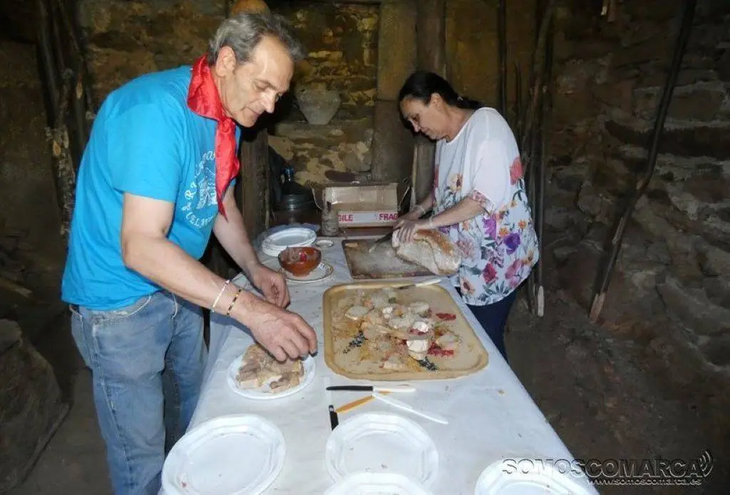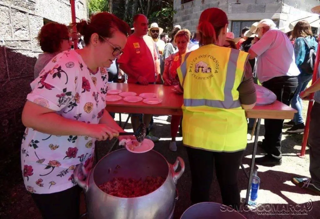 Los «fornos» de Vidueiro, Outeiro, do Fondo, do Campo y do Cima, además de la Bodega da Capilla sirvieron chorizos asados, empanada, «orella de porco», jamón asado, torta de «roxóns», roscón, crema de castañas, pan, vino y licores. Las viandas se convirtieron en el «premio» de las largas caminatas de horno a horno, muy distantes entre sí. «Así se va haciendo boca», decían con humor un grupo de asistentes.