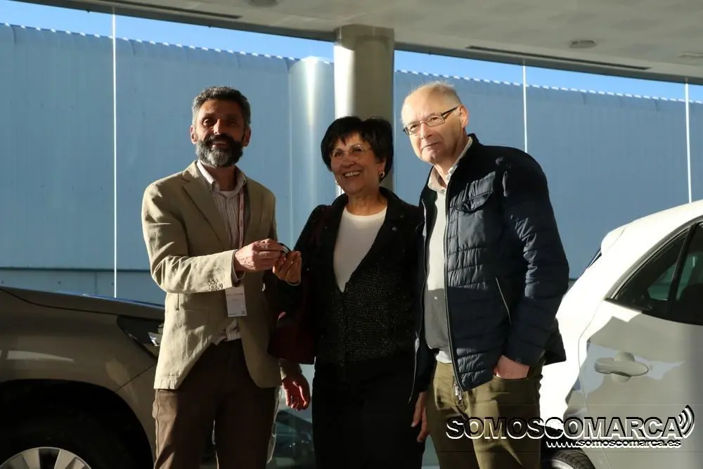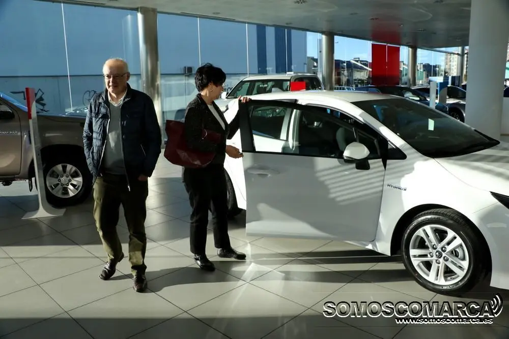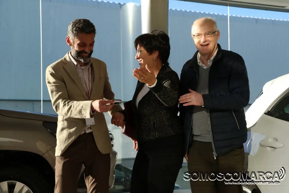 Daniel Vázquez, gerente de Neumaticos Navaliegos, Concesionario Oficial Toyota en El Bierzo, Valdeorras y Laciana, ha entregado la primera unidad del Toyota al matrimonio formado por la presidenta del Instituto de Estudios Bercianos, Mar Palacio, y el historiador Tito Fernández.