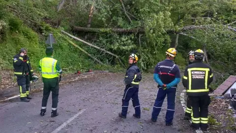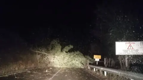 Una rama de gran tamaño corta el paso en la senda del río Sil en O Barco