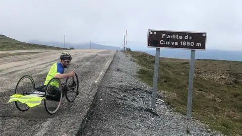 Iván Montero llegó al punto más alto de Galicia con su handbike