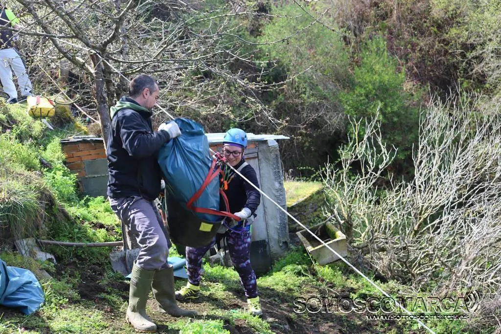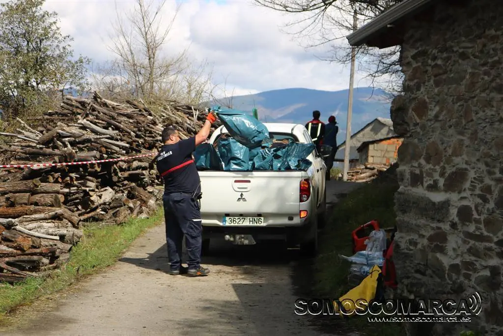 Mais de 200 sacos cheos de lixo foron transportados polos membros do GES de Valdeorras nunha pick-up ate a saída do pobo para despois ser recollida por camións. Carlos aseguraba que o lixo e de hai moito tempo, dende antes de haber contedores pero o cero é que sacaron de todo, coches de xoguete, televisores, botes e botellas ou cadeiras pero sobre todo plásticos.