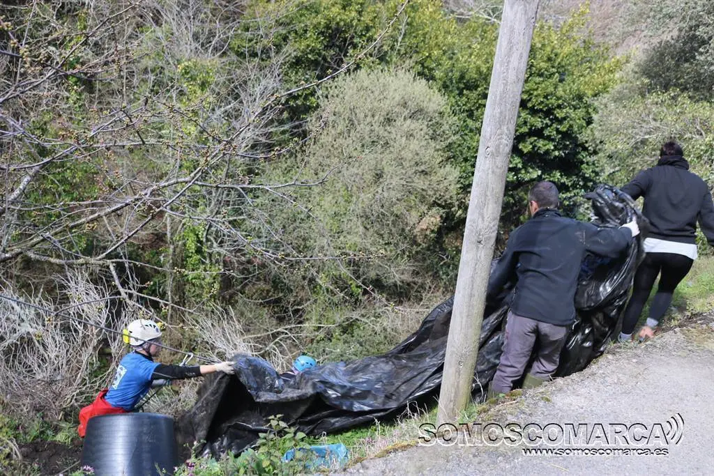 Trinta voluntarios entre os que se atopaban Inma Pumbariños e Carlos Ares, organizadores desta singular quedada, sacaron en sacos e cestos o lixo do arroio. Todo xurdiu por unha baixada que fixeron tempo atrás e viron que estaba todo cheo de plásticos e demais restos, y é que, como nos contaba Ares, cando fan barranquismo non lles gusta nada ver coma o lixo se fai dono da natureza e tentan por remedio. “Cando baixamos un río non nos gusta que haxa basura e quitámola”, asegurou Carlos.
